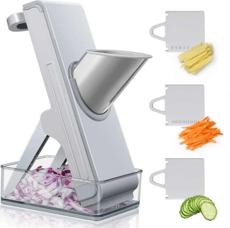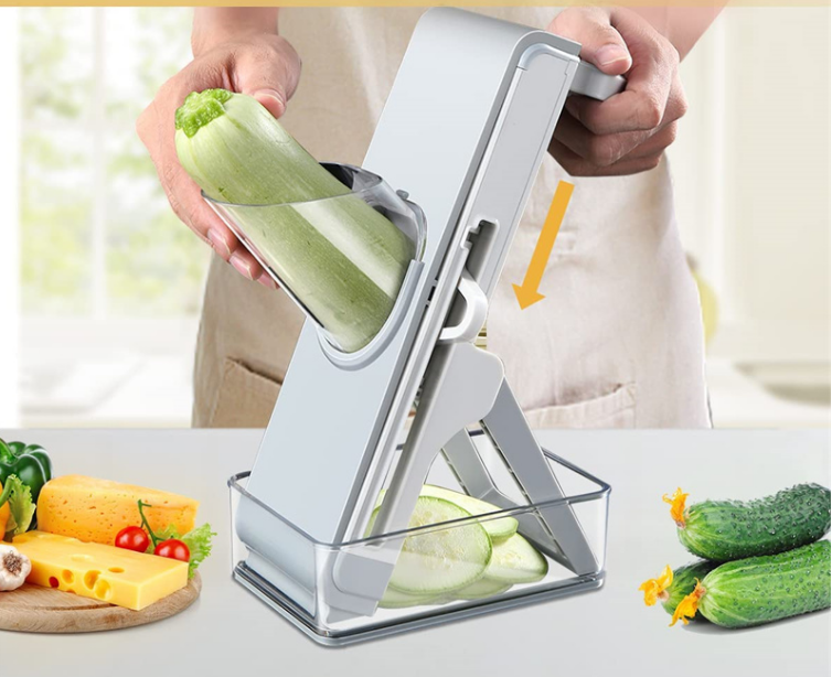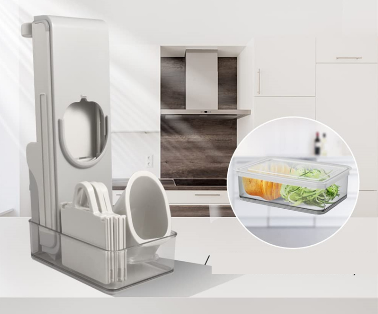 Fácil limpeza e armazenamento: o Cortador de Legumes FlexWay apresenta um design dobrável para fácil armazenamento diário. Recipientes de coleta de alimentos manter bancadas limpas. O suporte removível da lâmina facilita a limpeza, basta enxaguar a lâmina e o cortador para completar a limpeza. Limpeza é tão fácil.