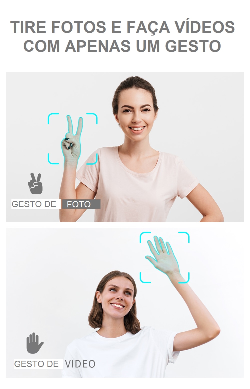 Mão gesto de disparo/reconhecimento de vídeo: 1-5m.