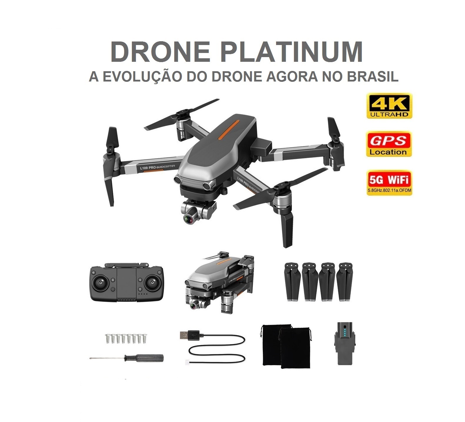 O que há de melhor em tecnologia, design, aerodinâmica você encontra no Drone Platinum L 109 Pro.